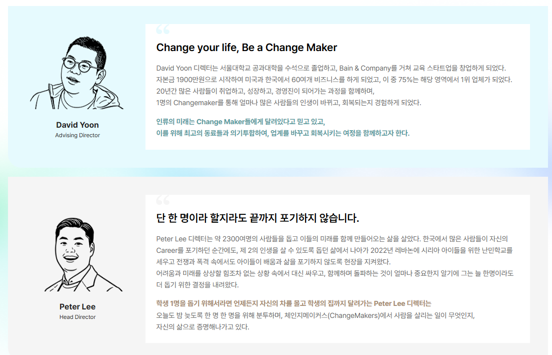 체인지메이커스는 입금하고 끝나는 곳이 아니다. '강남 스파르타 학원' 스타일이다.