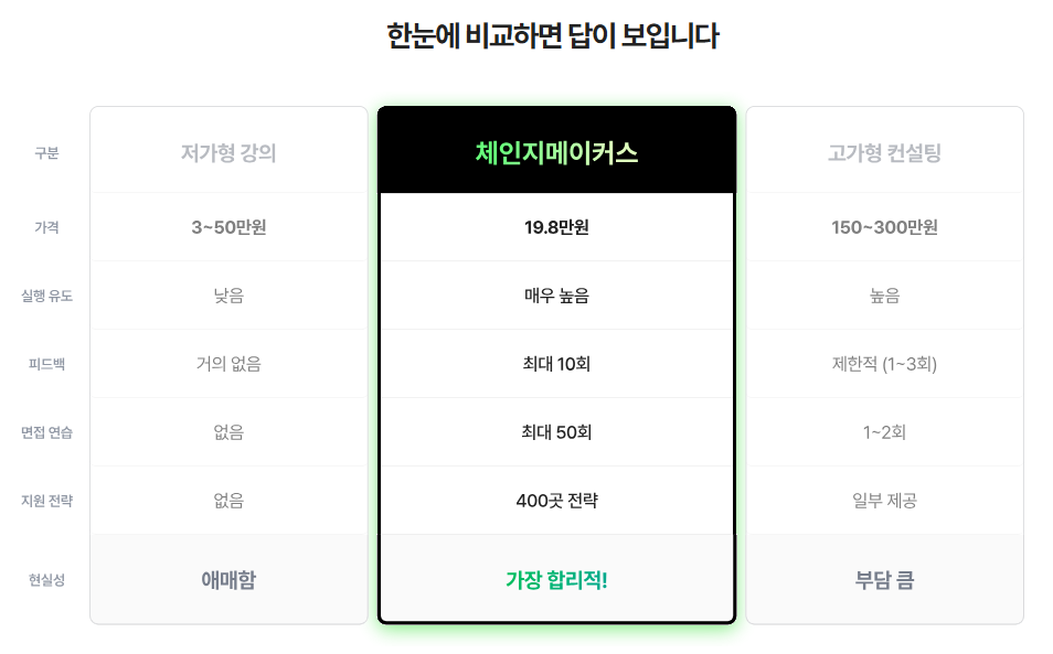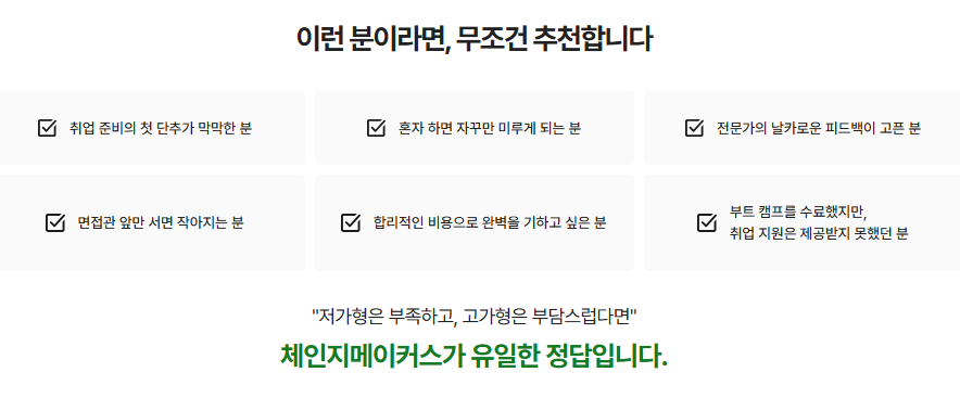 체인지메이커스가 기존의 면접준비학원들과 궤를 달리하는 이유는 분명합니다.