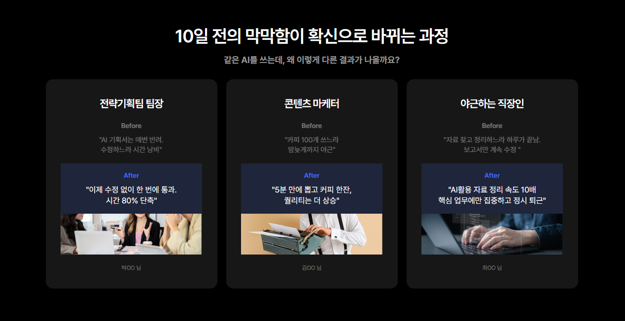 인터넷에 떠도는 가벼운 '직장인AI강의 추천디시' 글들에 지치셨다면, 그리고 단순히 그럴싸한 문장을 만들어내는 것을 넘어 나의 '업무 아키텍처' 자체를 완전히 뜯어고치고 싶은 분들이라면 이 과정을 강력히 권장합니다.