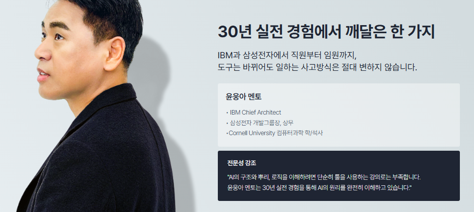 제가 이 마스터 클래스를 주저 없이 최고로 꼽는 이유는, 이 과정을 설계하고 직강하시는 윤웅아 멘토님의 '넘사벽' 커리어 때문입니다.